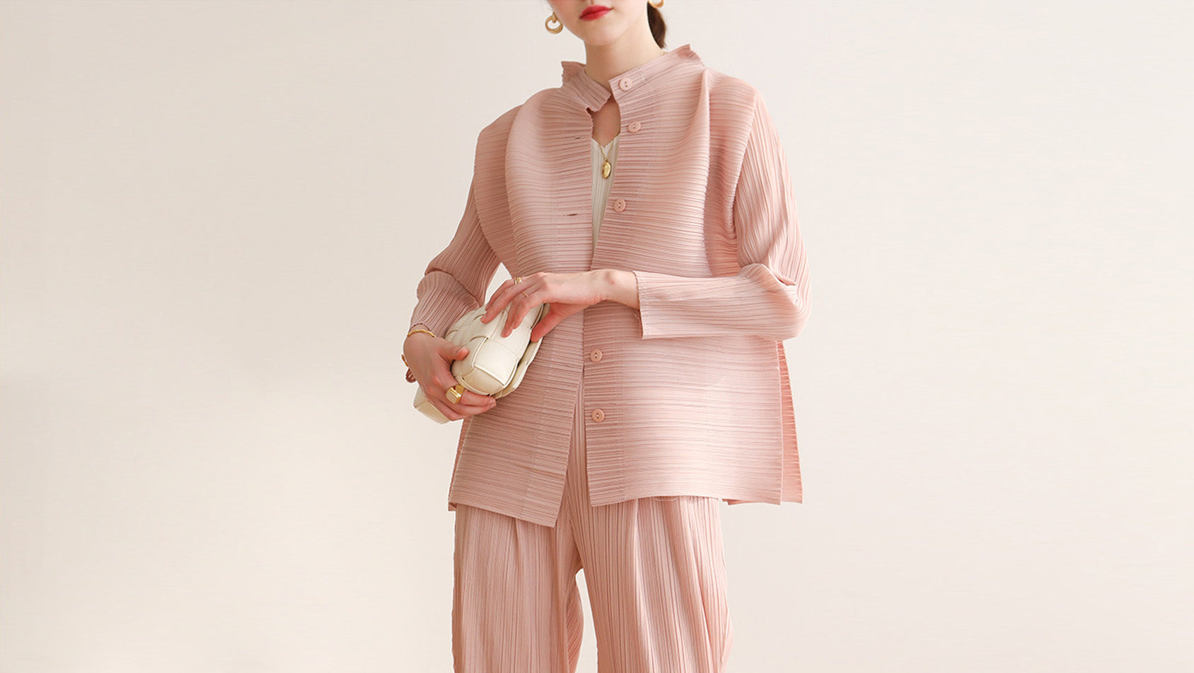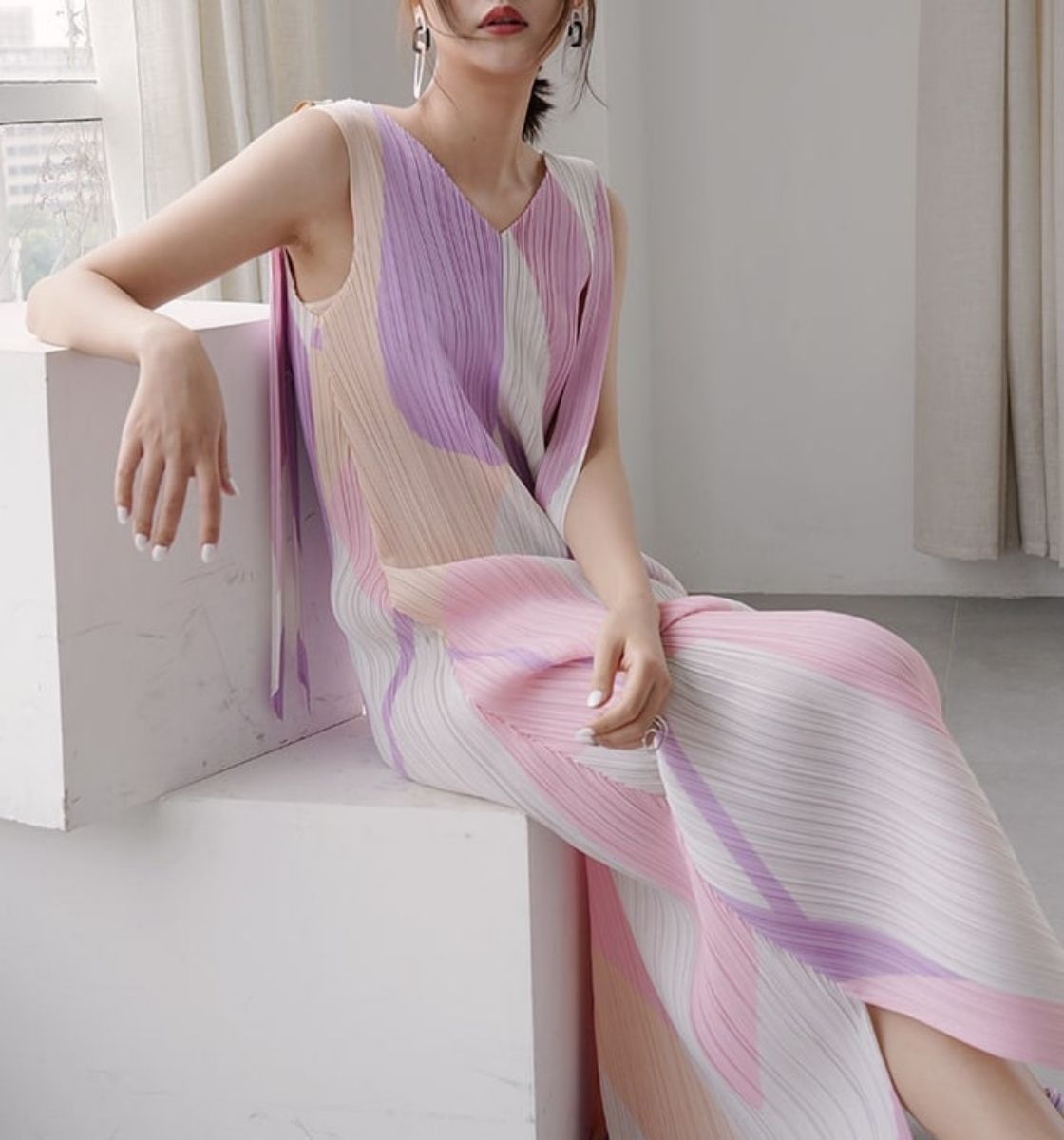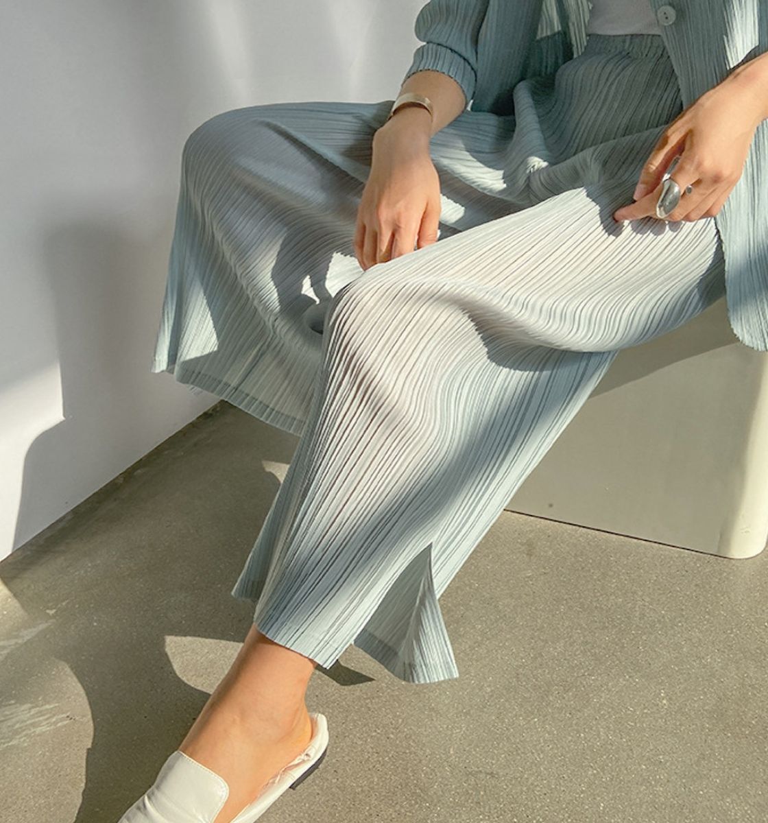Vanya Salmon Pink Ruffled Pleated Set